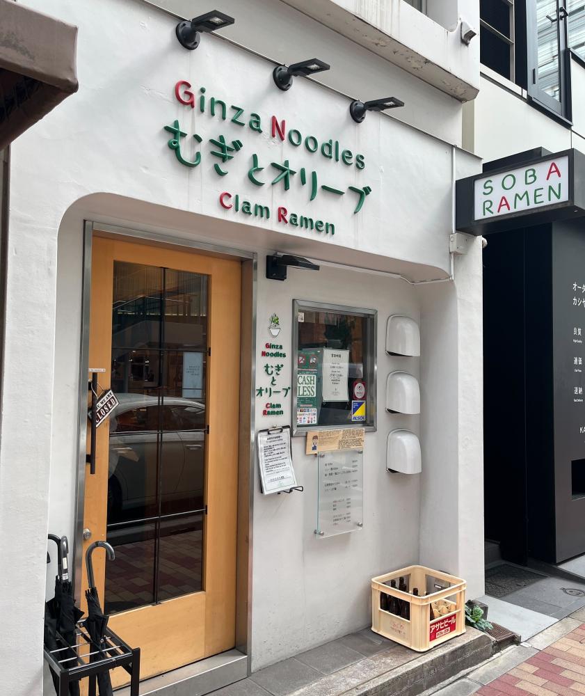 【銀座ラーメン】三重県桑名から直送した蛤100%の魚介スープと大山鶏の鶏油がマリアージュしたなんともいえないマイルドなスープとともにずるりといただけます。店内は、明るくて綺麗なので女性一人で気軽に利用できます。
